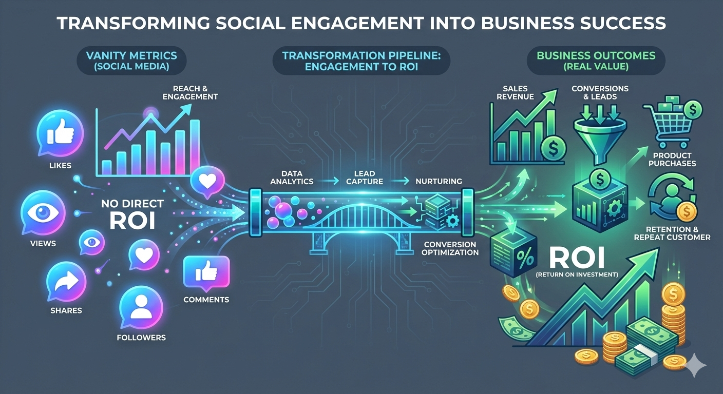 Social media platforms provide abundant metrics such as likes, views, shares, and followers. While these numbers indicate activity, they do not automatically reflect business success.