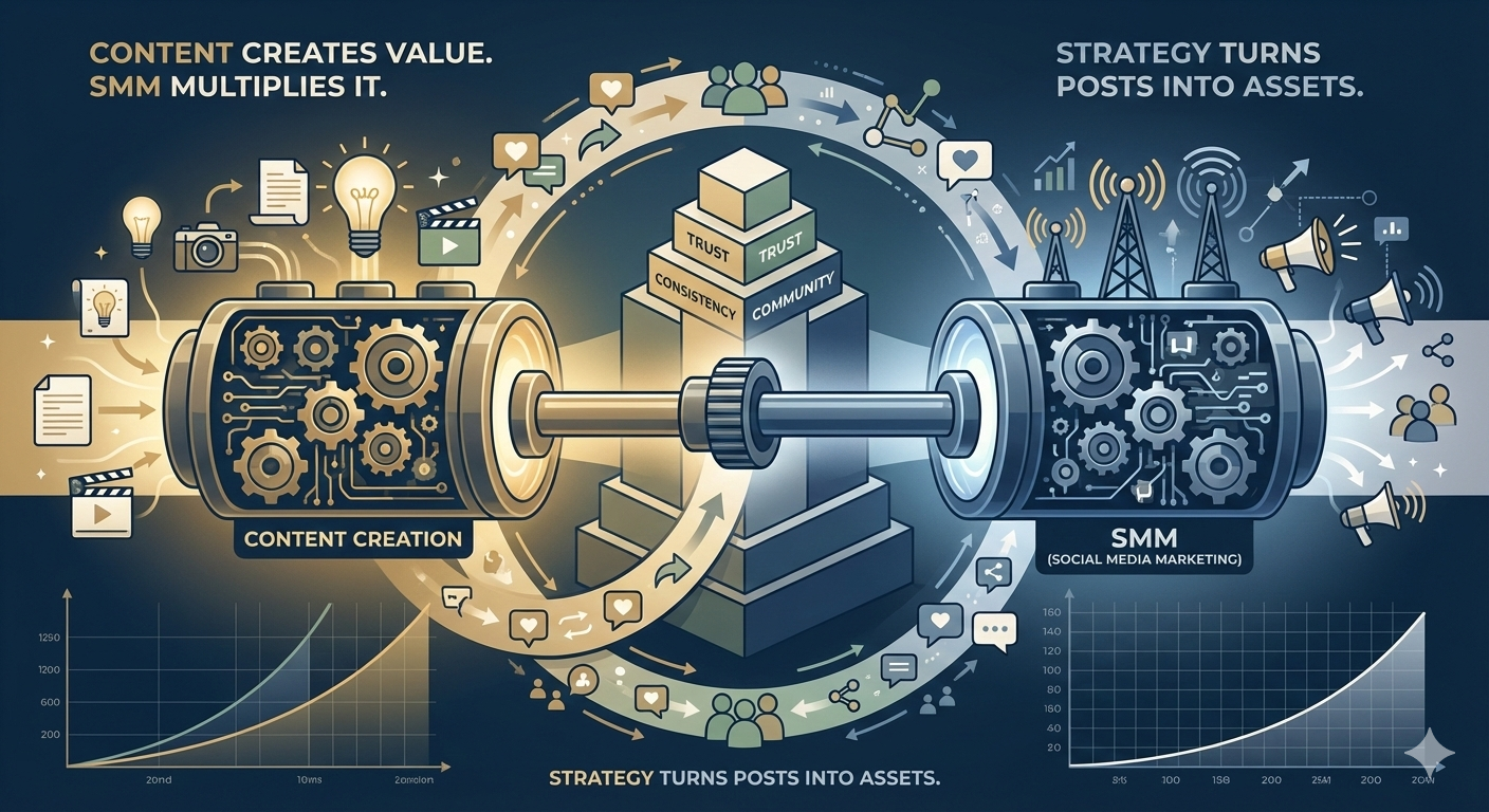 Without quality content, SMM has nothing to amplify. Without SMM, strong content often remains unseen.