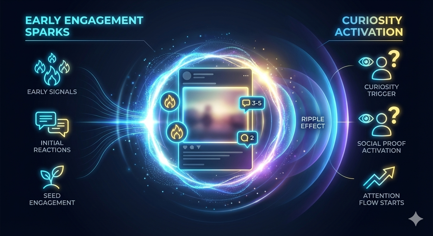 Social platforms interpret early engagement as a positive quality signal. As distribution increases, more users encounter the content—further reinforcing curiosity through visibility.
